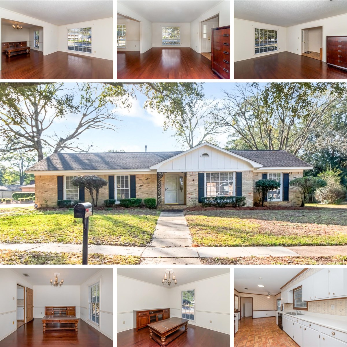 Located in Huntleigh Woods in West Mobile, this one-level, four bedroom, two bath brick home offers easy access to hospitals, schools, shopping, parks, and all the conveniences West Mobile has to offer. Major systems have already been updated, including a roof replaced in 2019 and heating and air replaced in 2021, taking care of the big expenses. The home features an easy-to-live-in layout with a formal living room and formal dining room, plus a spacious family room with a wood-burning fireplace and gas logs (seller has not used). The kitchen is one of the highlights, offering generous counter space and easy-care split brick flooring. Outside, you’ll find a double carport with a built-in screened porch that could be removed if desired, an exterior storage room, and a beautiful brick wall-enclosed patio for relaxing or entertaining. This home is ready for you to add your personal touch to make it the best home ever. ** Listing Broker makes no representation to accuracy of square footage. Buyer to verify. Any/All updates per seller(s). Year built is unknown. **